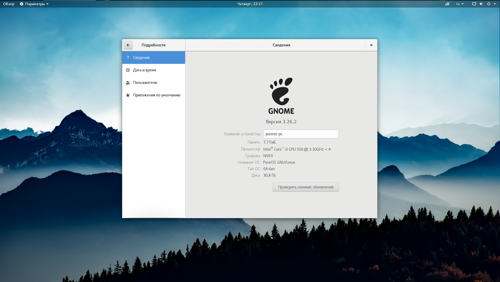 Сперва поговорим о происхождении PureOS. Его разработчиком является компания Purism, широко известная тем, что производит ноутбуки, полностью удовлетворяющие критериям Фонда Свободного ПО, то есть абсолютно не шпионящие за пользователям и максимально уважающие его свободу. Ноутбуки компании носят имя Librem, и могут похвастаться весьма впечатляющими характеристиками: тут вам и процессор Intel последних поколений, и до 32-х гигабайт оперативной памяти, SSD-накопитель объёмом до 1 террабайта, экран с разрешением от 1920×1080 до 4К, хорошая островная клавиатура с подсветкой. На мой взгляд просто мечта, а не ноутбук. А главное — для работы всех его компонентов не требуются проприетарные драйверы и несвободные бинарные прошивки (firmware). В качестве BIOS задействована свободная прошивка Coreboot, применяемая также в Хромбуках и портированная на множество материнских плат и ноутбуков прошлых лет. И в этом фича: Librem один из немногих Coreboot-совместимых ноутбуков с актуальным и мощным железом! Ну и разумеется здесь отключён модуль Intel ME, об уязвимостях в котором трубят по всему Интернету. Из очевидных минусов ноутбуков Librem является их цена (более 1500 долларов) и отсутствие на полках Российских компьютерных магазинов. Впрочем, популярность Librem растёт с каждым годом, и наверняка скоро эти ноутбуки появятся и у нас.