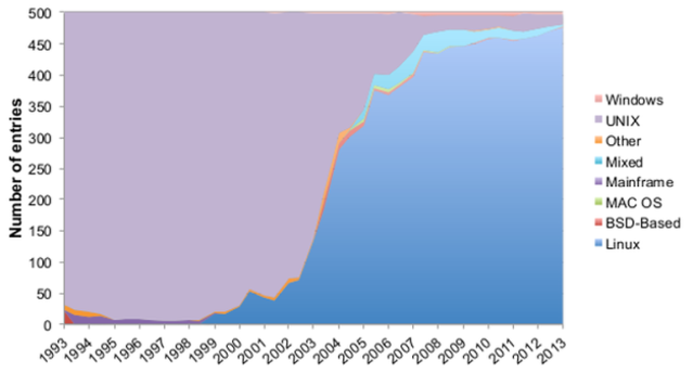 Состоянием на 2017 год операционные системы на базе Linux чаще всего используются на суперкомпьютерах. Каждая компания создает свое решение на базе ядра, которое оптимизировано под ее нужны и потребности. Из 500 самых мощных суперкомпьютеров 498 работают на Linux и еще два на UNIX подобной системе IBM AIX.