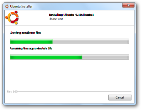 В этом первом методе мы уже загрузили Ubuntu Live ISO и записали его на CD. В Windows вставьте установочный диск Ubuntu 9.10 и запустите wubi.exe.