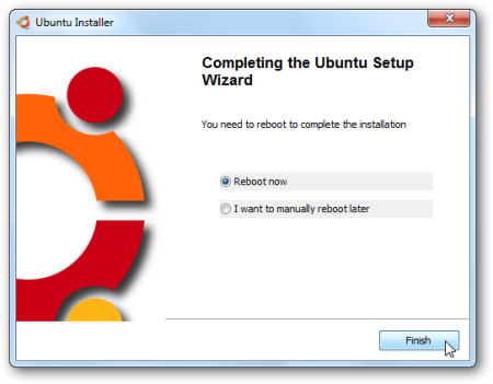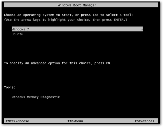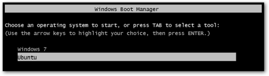 После первой перезагрузки вы можете выбрать между Windows 7 или Ubuntu на экране диспетчера загрузки Windows.