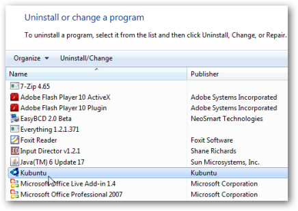 Итак, вы попробовали Ubuntu и решили, что вам это не нравится, так что теперь вы делаете? Это легко … просто удалите его. Загрузитесь в Windows 7 и зайдите в Установка и удаление программ…