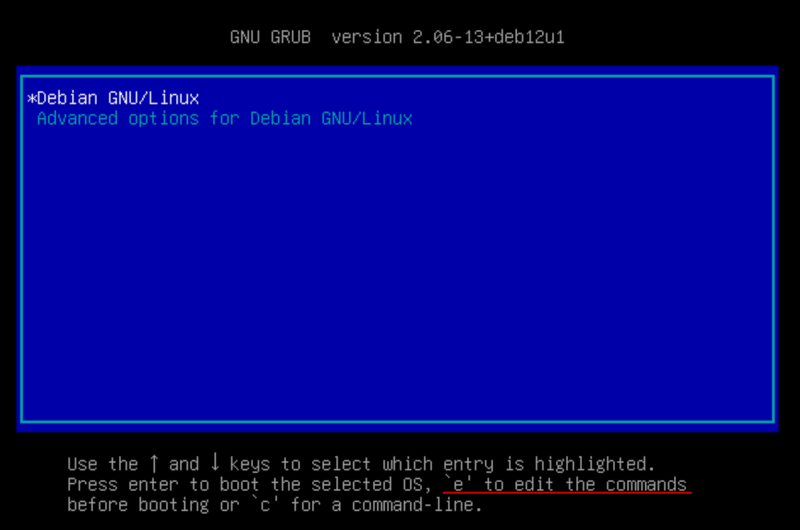 Теперь выберите соответствующий пункт, нажмите e для редактирования параметров загрузки и допишите в конец параметр single как показано на скриншоте.