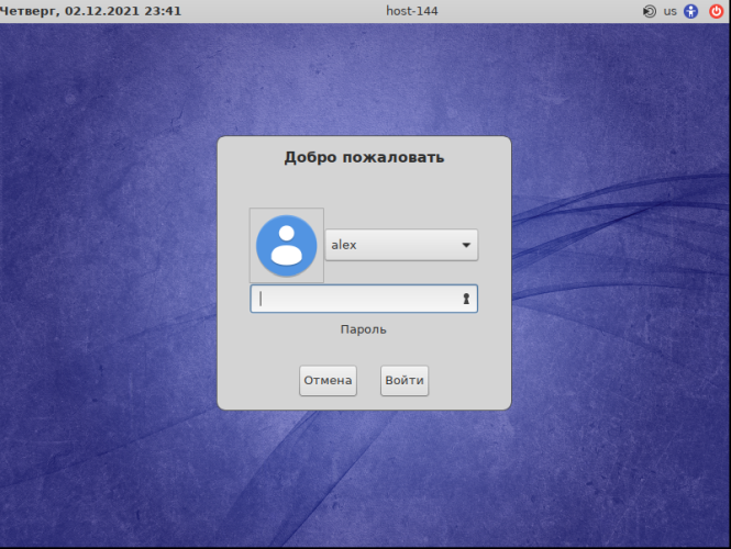 Введите пароль для пользователя, который был создан на этапе установки и нажмите на кнопку Войти и отобразится рабочий стол: