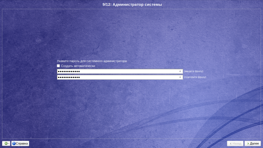 Шаг 18. Пароль для администратора системы