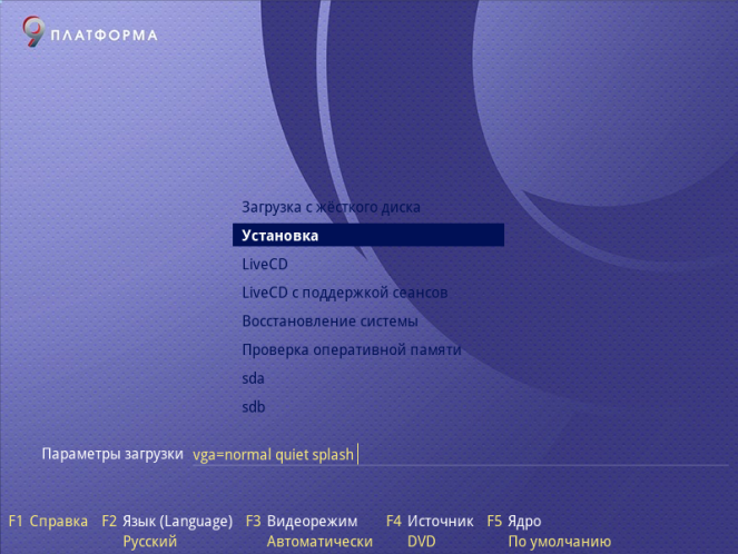 Сразу же после перезагрузки устройства появится графическое меню установщика. Необходимо выбрать пункт Установка: