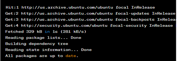 Этот вывод указывает на то, что система успешно подключилась к репозиториям пакетов и обновила локальный индекс пакетов, но пакет не требует обновления. Если бы обновления были доступны, они были бы перечислены в выходных данных. Вы можете использовать команду «sudo apt upgrade» для их установки.