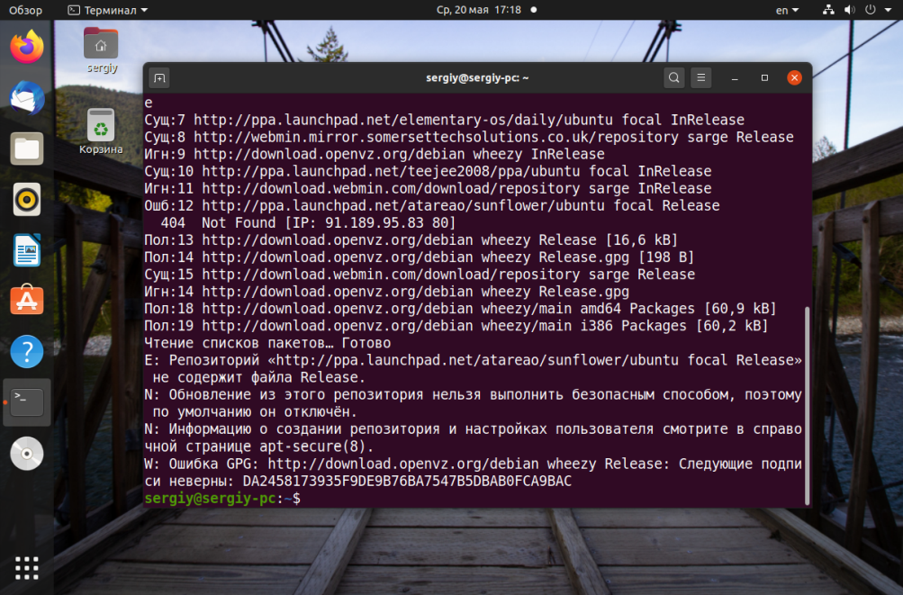 Ключ с 2017 года недействительный и разработчики, похоже не собираются его обновлять, поэтому надо использовать опцию —allow-unauthenticated. Обновим списки пакетов: