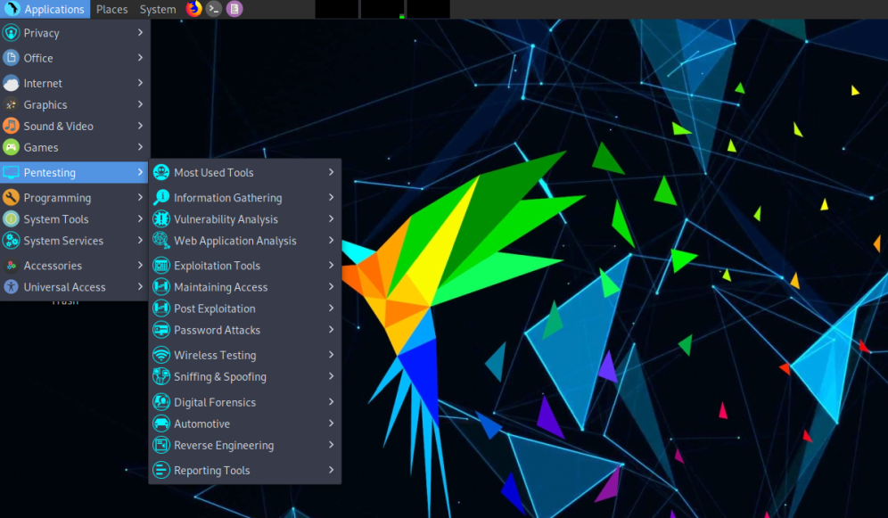 Установка Parrot Security OS на компьютер завершена и теперь можно перейти к использованию системы для тестирования безопасности используя различные программы, которые поставляются вместе с операционной системой: