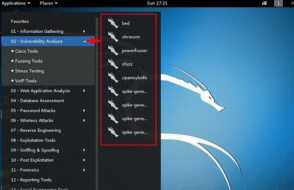 Все инструменты стресс-тестирования находятся в разделе Applications → 02-Vulnerability Analysis → Stress testing