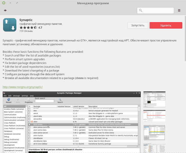 Но Synaptic по-прежнему находится в репозиториях Debian/Ubuntu и производных и устанавливается он из Центра управления Ubuntu/Менеджера пакетов в один клик.