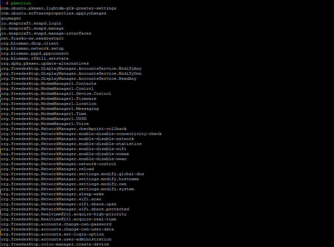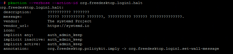 Утилита pkaction может использоваться для получения подробной информации о зарегистрированном действии Polkit.