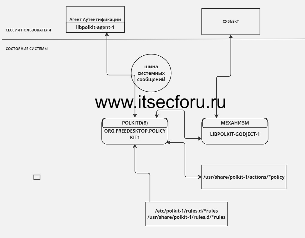 Polkit зарегистрирован на “системной” шине D-Bus с именем org.freedesktop.PolicyKit1.