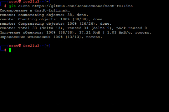 Теперь на нашей атакующей машине (Kali Linux) нам нужно клонировать репозиторий Follina Джона Хаммонда с GitHub, применив следующую команду: