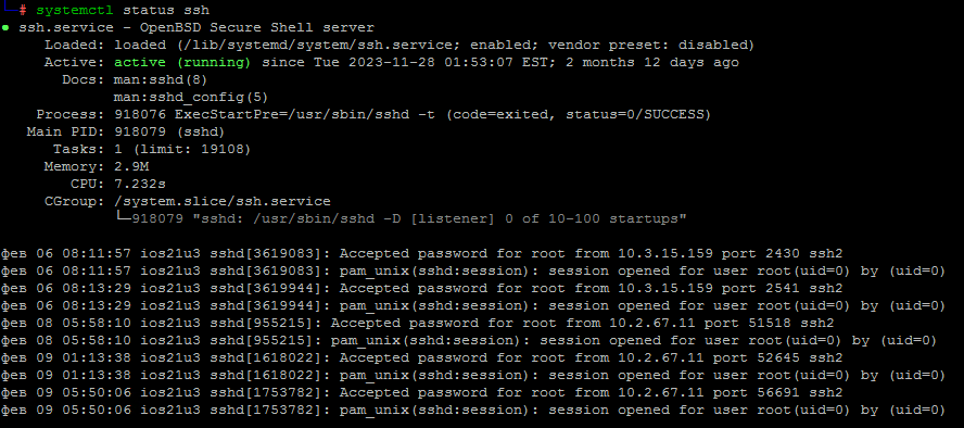 sshd : 10.10.0.5, LOCAL