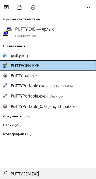 Шаг #1: Найдите puttygen на панели задач Winodws, как показано ниже, нажмите на PuTTYgen.