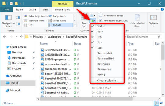 Если вам нравится представление «Подробности», но вы обнаружите, что есть некоторая информация, которую вы хотели бы видеть, но проводник не отображает ее, вы можете использовать кнопку «Добавить столбцы» на вкладке «Вид».