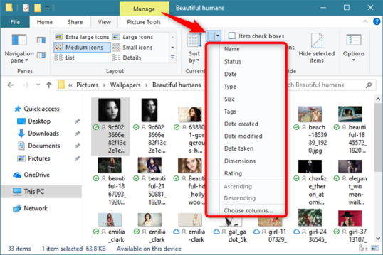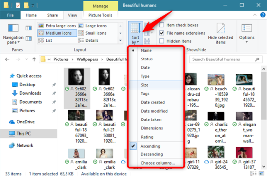 Найти то, что вы ищете, проще, если ваши файлы и папки отсортированы правильно. Вот почему Проводник позволяет сортировать их по различным критериям. На вкладке «Вид» нажмите или коснитесь «Сортировать по» и выберите параметр, например «Имя» или «Тип», чтобы изменить порядок файлов на основе выбранных критериев. Вы также можете выбрать Descending или Ascending, чтобы изменить порядок, в котором перечислены ваши файлы.