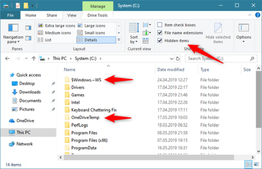 Как Windows, так и приложения скрывают определенные файлы от просмотра, потому что их случайное удаление может вызвать проблемы и помешать запуску файлов в должном порядке. Однако, если вы хотите увидеть скрытые файлы в проводнике , вы можете. Чтобы показать или скрыть их все, выберите или отмените выбор параметра «Скрытые элементы» на вкладке «Вид». Скрытые файлы и папки отображаются с размытыми цветами, чтобы предупредить вас, что когда-то они были скрыты от глаз.