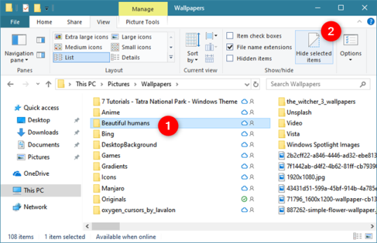 Если вы хотите скрыть некоторые из ваших файлов или папок, выберите их, а затем нажмите «Скрыть выбранные элементы», чтобы пометить файлы и папки по вашему выбору как скрытые. Это отлично подходит для папок или файлов, которые содержат конфиденциальную информацию, которую вы не хотели бы, чтобы кто-то другой нашел.