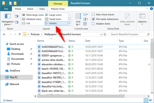 Если вы предпочитаете подробности, ваши файлы и папки отображаются один за другим в одном столбце. Однако вы также получаете несколько дополнительных столбцов для отображения дополнительных данных о каждом файле, таких как дата последнего изменения файла, размер файла и тип файла.