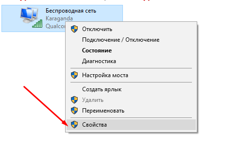 На прошлой странице адаптера, щелкаем правой кнопкой по адаптеру и выбираем «Свойства»: