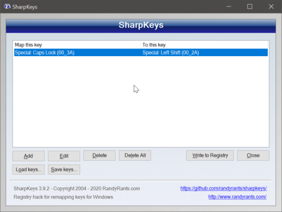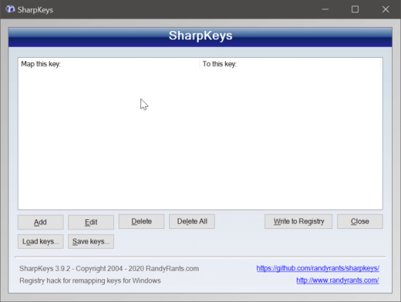 Шаг 1. Загрузите, установите и запустите SharpKeys на своем ПК. Вы можете получить его по этому URL-адресу: github.com/randyrants/sharpkeys/releases