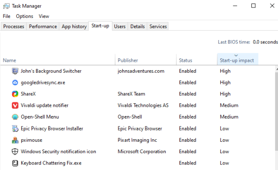 2. Удалите или уменьшите количество элементов автозагрузки Windows 10