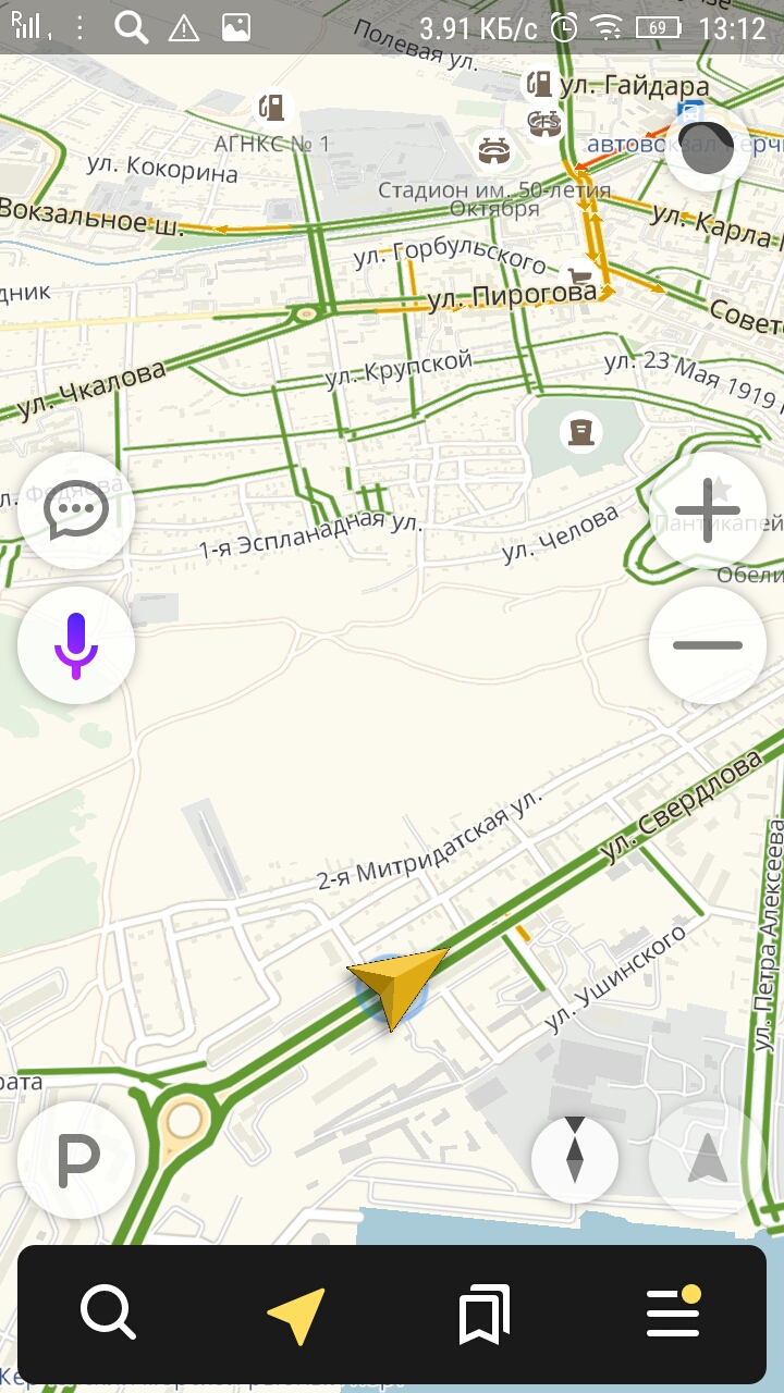 - Запустите приложение для навигации через иконку на домашнем экране (жёлтая стрелка на белом фоне).