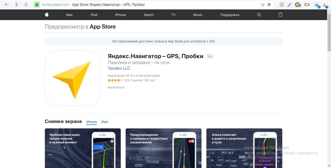 - Либо же перейдите через мобильный девайс по ссылке, которая ведёт на страницу навигационного приложения в этом же магазине.