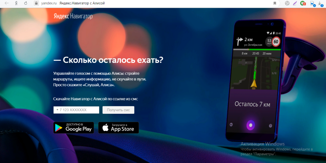 - Вы также можете скачать приложение через официальный сайт «Яндекс.Навигатора» вне зависимости от того, какая у вас модель телефона и какая на нём «операционка». Введите свой номер телефона и нажмите на «Получить СМС» — сервис вам сбросит в сообщении ссылку для скачивания приложения.