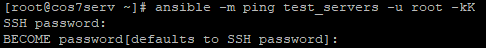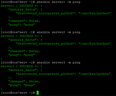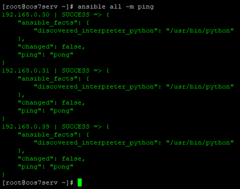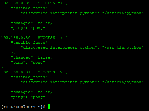 Модуль ping проверит, есть ли у вас учетные данные для подключения к узлам, определенным в файле инвентаря, и может ли Ansible запускать сценарии Python на удаленном сервере от имени root пользователя.