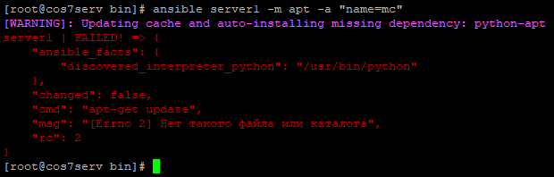 24.1. Ошибка «[WARNING]: Updating cache and auto-installing missing dependency: python-apt».