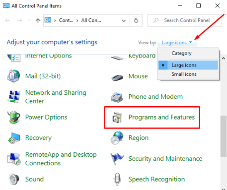 После того, как он откроется, выберите для просмотра панели управления параметр «Большие значки» или «Маленькие значки», чтобы можно было видеть все элементы панели управления.