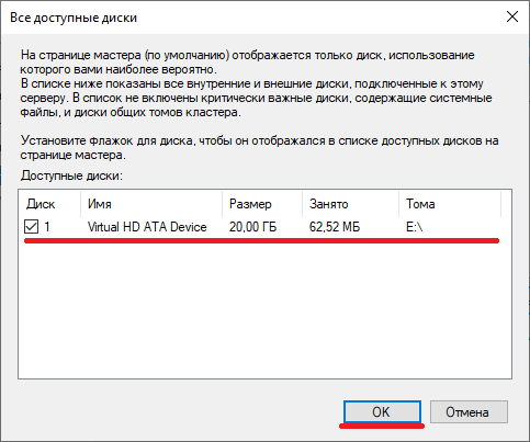Выбираем из доступных дисков необходимый и жмем ОК.