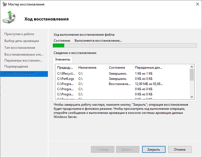 Ожидаем некоторое время, пока происходит процесс восстановления.