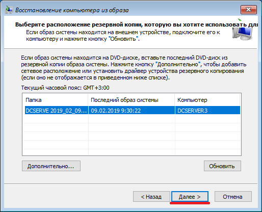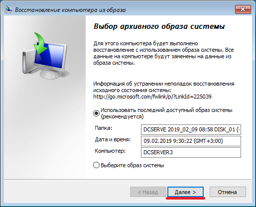 Откроется окошко «Восстановление компьютера из образа». Выбираем образ любым из предложенных способов. >>Далее.