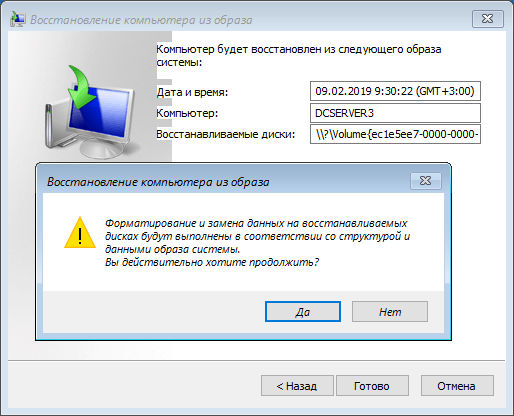 После перезагрузки сервер восстановлен по состоянию последней резервной копии.