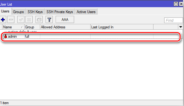 В завершение, мы создаём пользователя для входа в роутер Микротик и отключаем стандартного пользователя «admin».