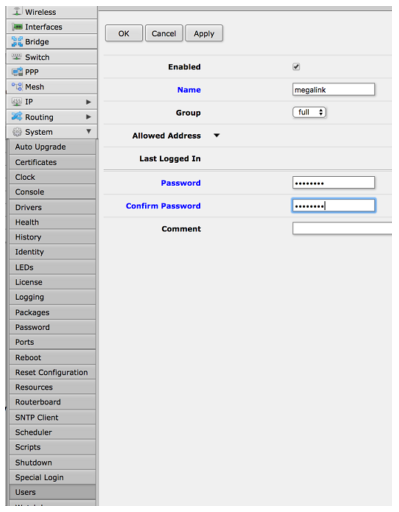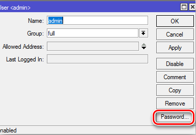 Нужно вручную установить пароль на Микротик. Для этого нам нужно: