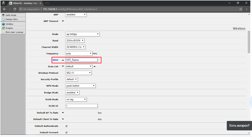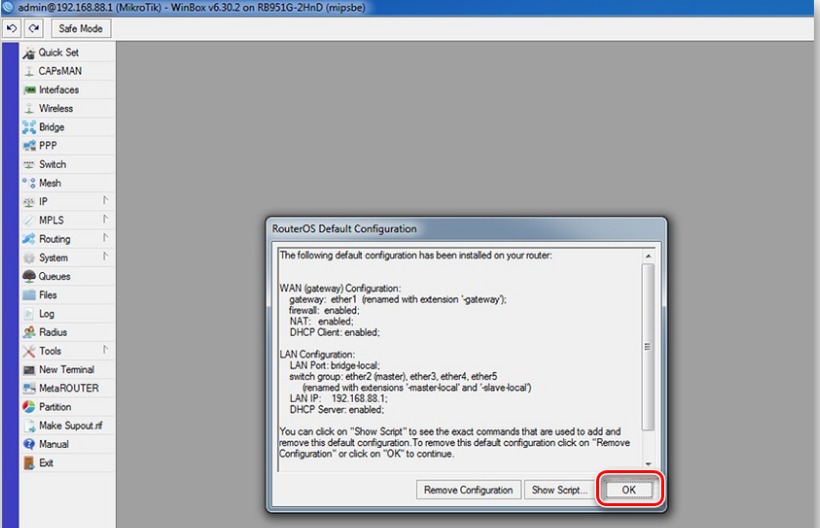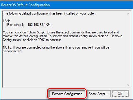 Эта утилита открывает перед пользователем окно конфигурации Mikrotik. Здесь у пользователя есть выбор, либо оставить всё как есть, либо изменить.