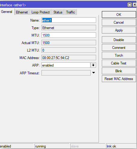 Настройка этим способом будет делаться через подключение к MAC Telnet Server`у. В Telnet сервере на интерфейсе уже включён по умолчанию «ether1» и не нужно делать дополнительных действий.