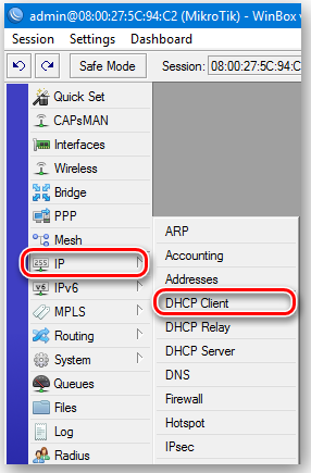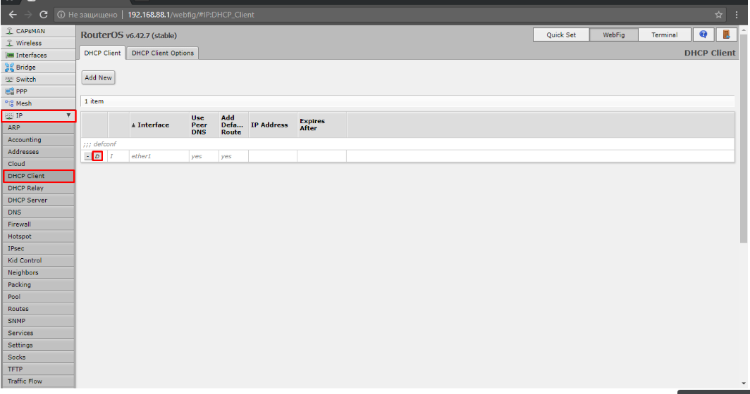 3. Возвращаемся во вкладку «IP» и выбираем там раздел «DHCP Client». Посередине появится список с буквой «D». На него мы и нажимаем;