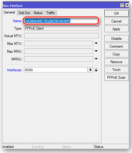 3. РРРоЕ-соединение. Здесь нужно придумать и ввести вручную имя своего соединения, затем ввести своё имя и пароль. Нажимаем на «Reconnect».