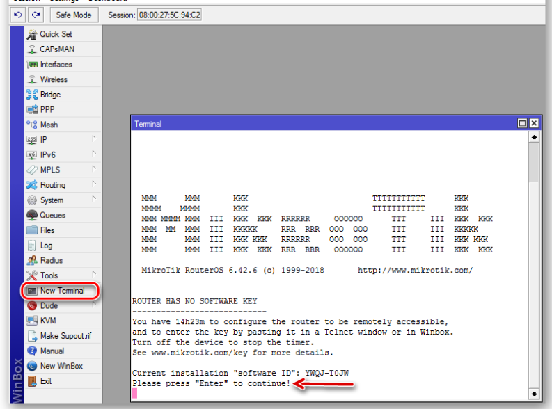 Бывают случаи, когда нужно изменить MAC-адрес на требуемый провайдером. Для этого нам нужно выбрать «New Terminal» и нажать в открывшемся окне «Enter».