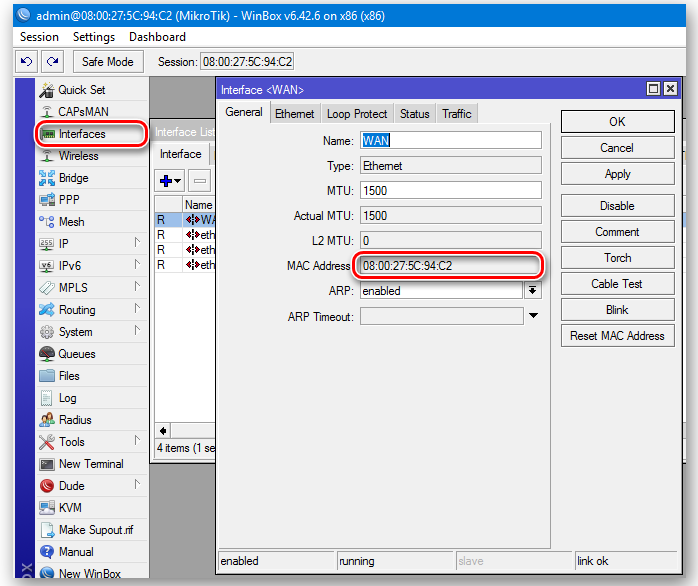 Переходим в «Interfaces» и открываем свойства WAN. Там смотрим, изменится ли MAC-адрес.
