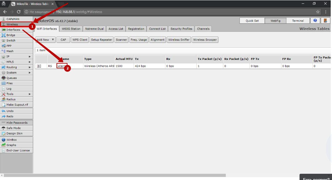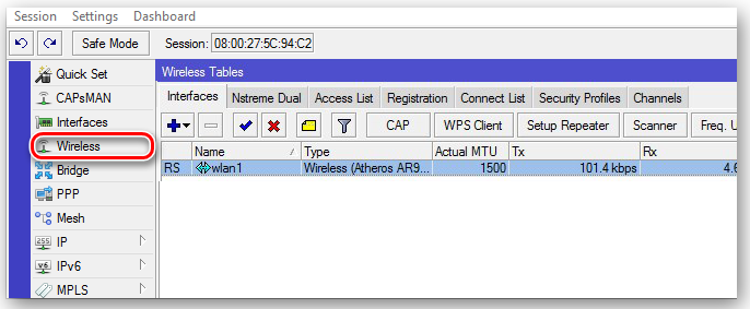 Заходим в неё и слева выбираем раздел «Wireless». Посередине откроется список подключений. Выбираем там «wlan1».