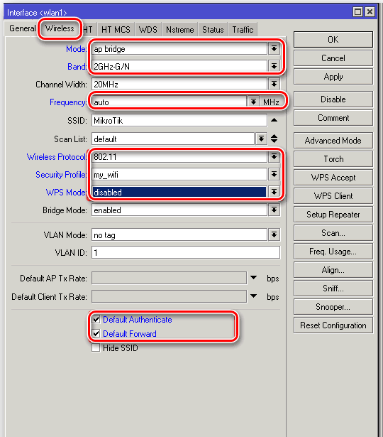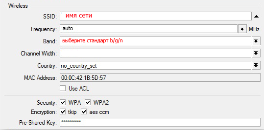 В выбранных настройках нас интересуют настройки под пунктом «Wireless».