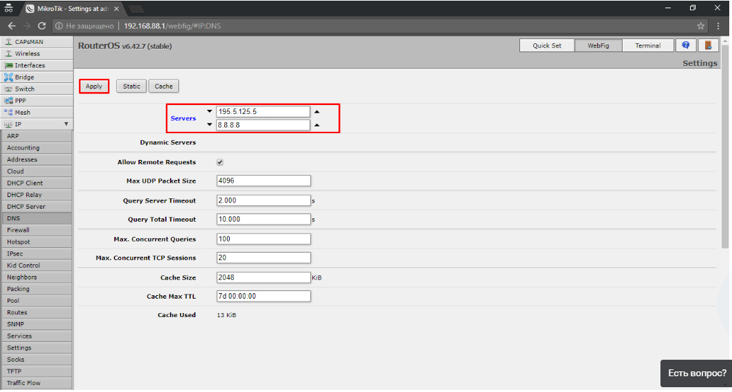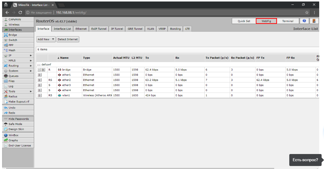 Это последняя настройка роутера Микротик, через «WebFig». Что мы делаем?