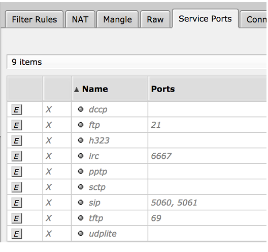 7. Далее делаем переход во вкладку «Service Ports» и там производим отключение портов. Это делается нажатием на кнопку «D» во всех строчках;