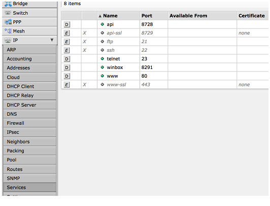 8. Во вкладке «IP» находим раздел «Services» и отключаем в нём не используемые способы захода.